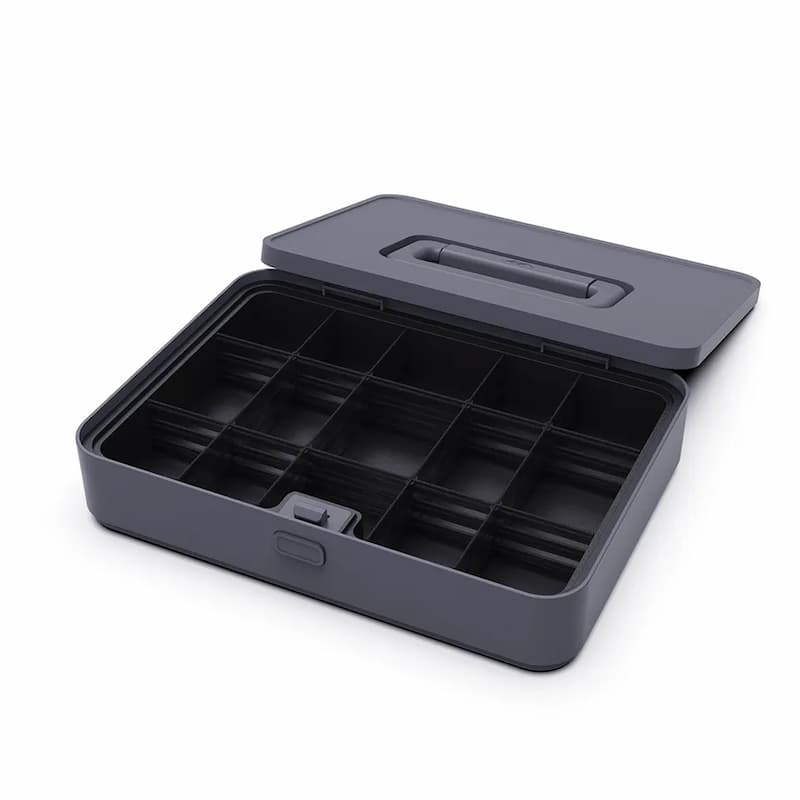 این جعبه با طراحی ماژولار و انباشتی، به شما کمک می‌کند تا فضای کار یا خانه را مرتب نگه دارید – ایده‌آل برای تعمیرات خانگی، DIY یا نگهداری قطعات الکترونیکی.