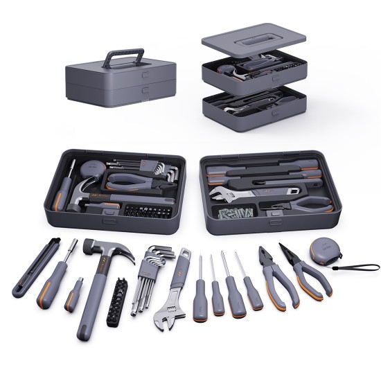 ست ابزار دستی جیمی‌هوم X2-AB Jimihome X2-AB Hand Tools Set یک مجموعه دو لایه جمع‌وجور و حرفه‌ای از ابزارهای ضروری است که برای تعمیرات خانگی، پروژه‌های DIY و کارهای روزمره طراحی شده است. این ست با کیفیت ساخت بالا و سازمان‌دهی هوشمند، ابزارهایی را ارائه می‌دهد که برای اندازه‌گیری، برش و ساخت در مواد مختلف مناسب هستند.