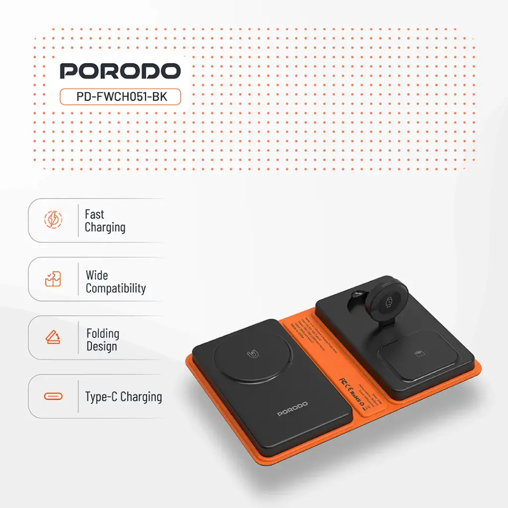 پاور بانک همراه چهار کاره مگ سیف پرودو Porodo 8000mAh Folding 4-Device Charger