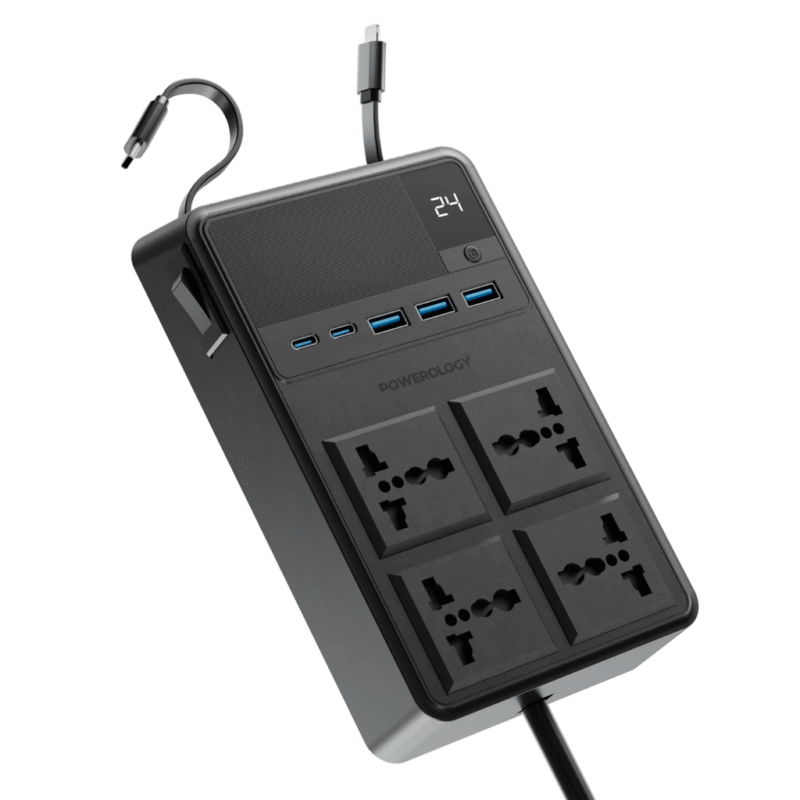 چند راهی پاورولوژی Powerology 2500w 4 AC Power Strip with Built-In Retractable Cables، راه‌حل ایده‌آل چندمنظوره برای تأمین برق است. این محصول برای تحمل تمام ولتاژهای ورودی از ۱۰۰ تا ۲۴۰ ولت و جریان تا ۱۰ آمپر طراحی شده است.