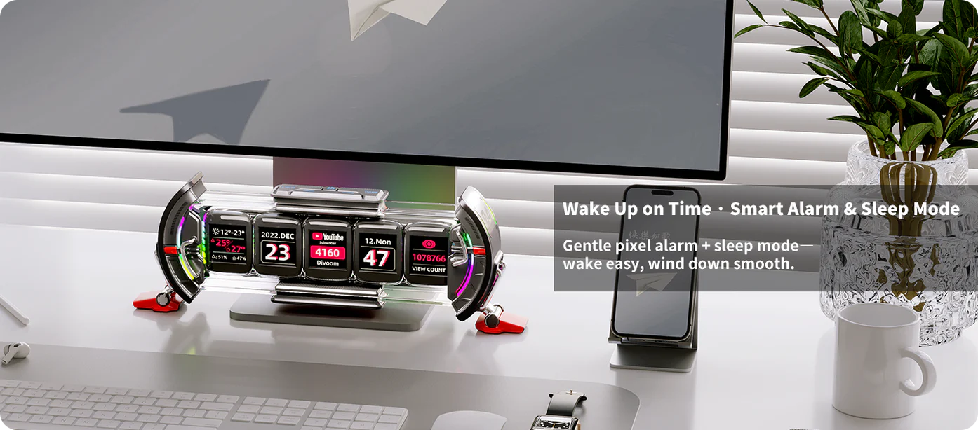 اگر به دنبال یک گجت متفاوت برای میز کار یا اتاق گیمینگ خود هستید، ساعت و نمایشگر دیجیتال سایبرپانک دیووم Divoom Time Gate چیزی فراتر از یک ساعت رومیزی ساده است. این محصول ترکیبی از طراحی سایبرپانک، نمایشگر دیجیتال هوشمند و نورپردازی جذاب RGB است که هم کاربردی است و هم دکوراتیو.