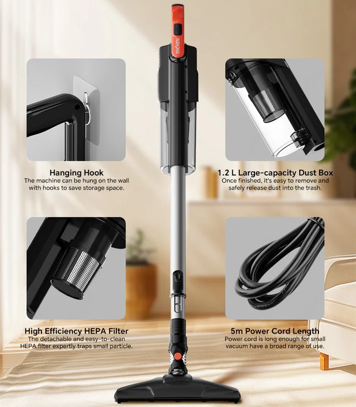 جاروبرقی دستی پرقدرت مدل ENCHEN V3 یک وسیله برقدار و قدرتمند برای تمیز کردن سطوح مختلف در خانه، محل کار یا خودرو است. این محصول با طراحی کلاسیک کابلی و 2-in-1 بهصورت دستگاهی قابلحمل و کاربردی برای پاکسازی گرد و غبار، مو، ذرات ریز و آشغالهای سطحی در فضاهای مختلف طراحی شده است.