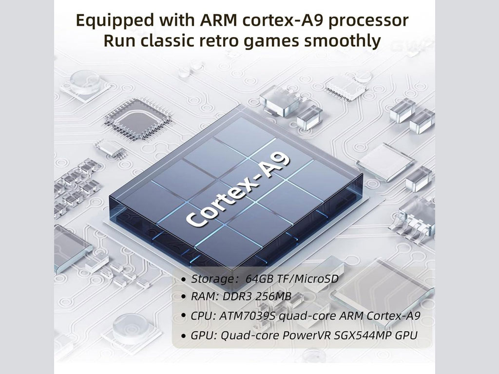 با کنسول بازی گرین تعداد بسیار زیادی بازی کلاسیک و مدرن دارد و بیش از 10 هزار بازی از کنسول‌های  CPS / FBA / FC / GB / GBA GBC / GG / MAME / MD / NEOGEO / NGPC / PCE / PS1 / SFC / SMS / WSC را پیش‌رو خواهید داشت؛ بنابراین تکرار بازی‌ها شما را کلافه نخواهد نکرد. ویژگی دیگر آن داشتن پردازنده ARM Cortex-A9 است که با پردازش سریع یک بازی همگام‌سازی شده و بدون تاخیر را تجربه خواهد کرد.