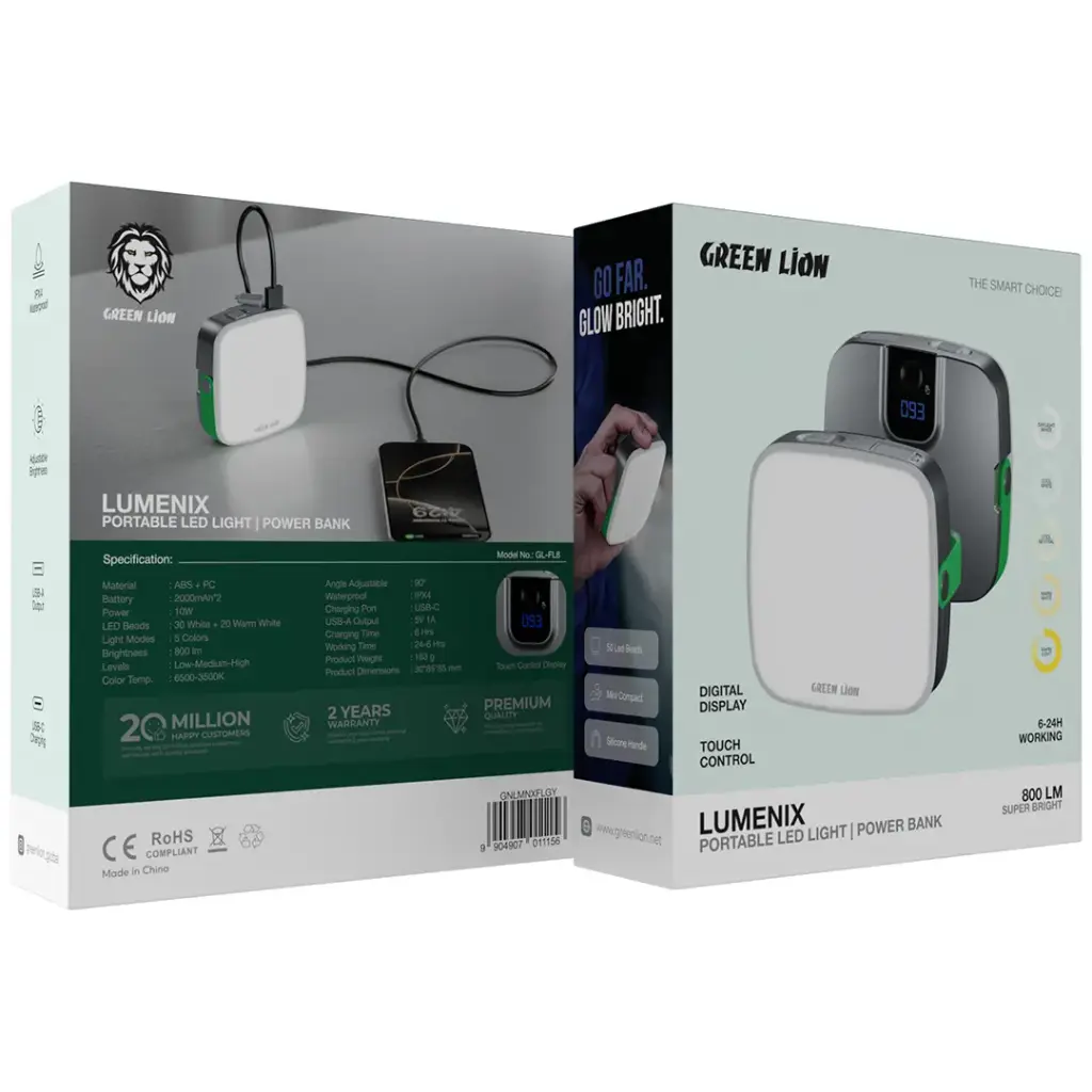 چراغ ال ای دی همراه با پاوربانک گرین لاین Green Lion Lumenix یک ابزار چندکاره است که نوردهی قوی، شارژ دستگاهها و مقاومت در شرایط مختلف را در یک محصول جمع کرده و همراه مطمئن شما در هر سفر و فعالیت فضای باز خواهد بود.