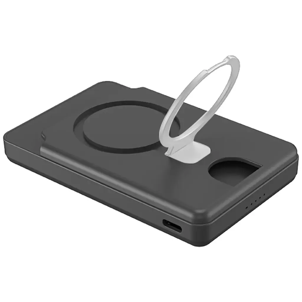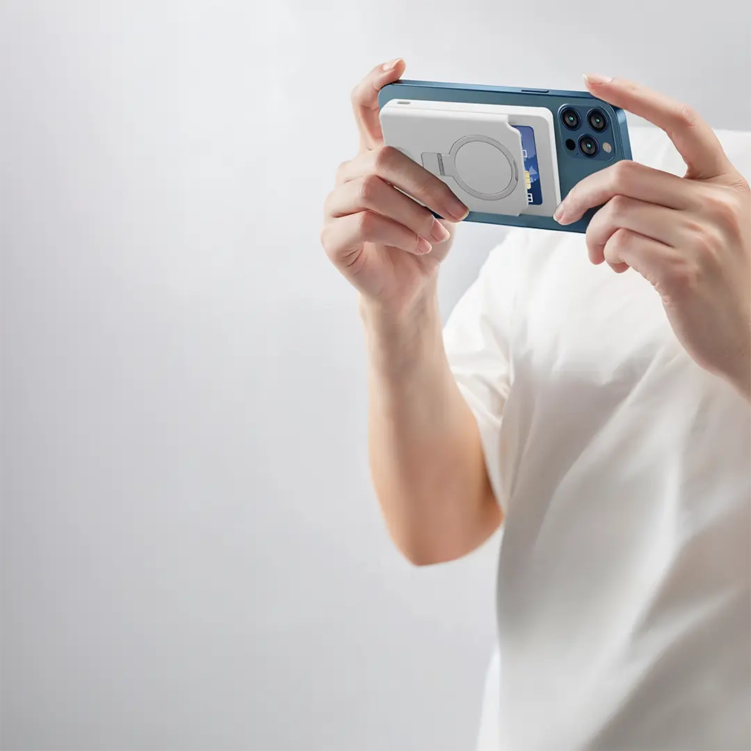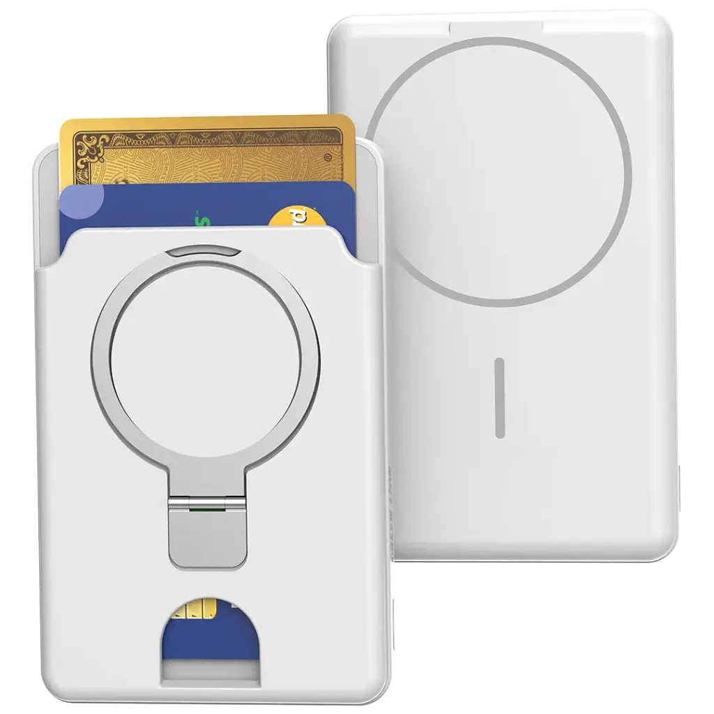 این کیف‌پول مجهز به آهنرباهای بسیار قدرتمند است که دستگاه‌های سازگار با MagSafe را به طور ایمن نگه می‌دارد و طراحی پایه‌دار (kickstand) آن امکان استفاده هندزفری را فراهم می‌آورد.