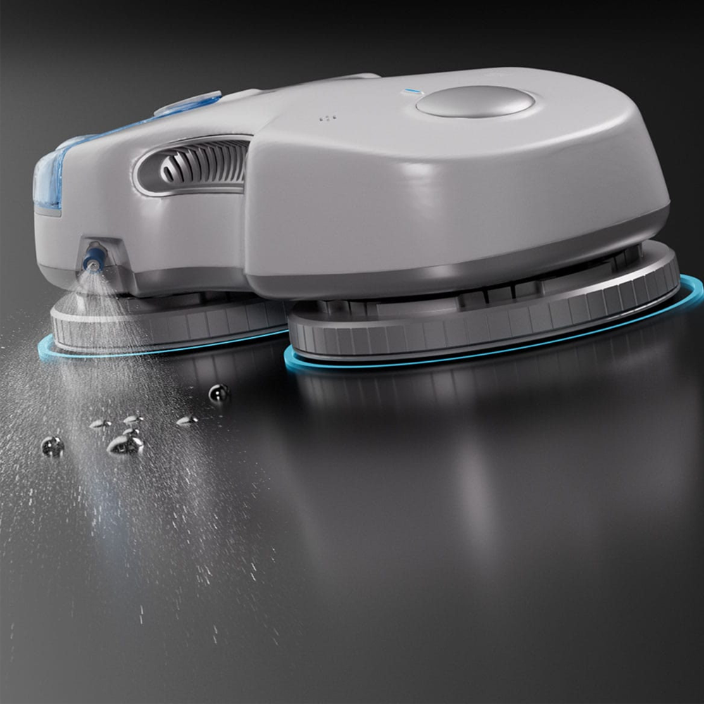 استفاده از دو موتور مستقل برای حرکت هر دیسک پاککننده، موجب افزایش کارایی دستگاه در سطوح عمودی و شیشههای بلند شده است.
