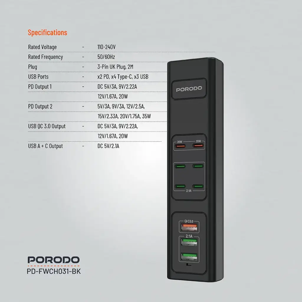 هاب شارژر 85 وات Porodo 85W Multi-Port USB Charging HUB