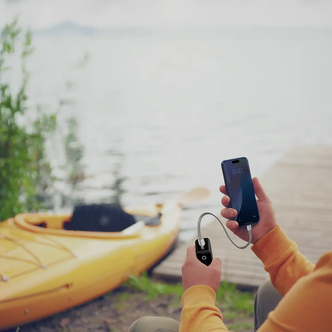 که در گوشی‌ها، تبلت‌ها و لپ‌تاپ‌ها رایج است. داخل آن، یک کابل USB-C داخلی دیگر تعبیه شده تا بدون نیاز به کابل اضافی همراهتان باشد.