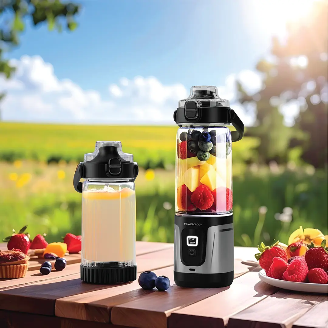 مخلوط کن قابل حمل 600 میلی لیتری دسته دار پاورولوژی به دو باتری 2000mAh مجهز شده که برای چندین بار استفاده کافی هستند. وجود درگاه USB-C امکان شارژ سریع و آسان را فراهم می‌کند، بنابراین همیشه آماده استفاده خواهد بود.