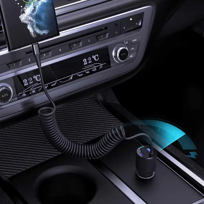 طراحی این شارژر به‌گونه‌ای انجام شده که نظم فضای داخل خودرو حفظ شود. کابل فنری Type-C کمک می‌کند کابل‌ها مزاحم رانندگی نباشند و همیشه در دسترس باقی بمانند. این موضوع به‌خصوص برای افرادی که استفاده مداوم از شارژر دارند، اهمیت زیادی دارد.